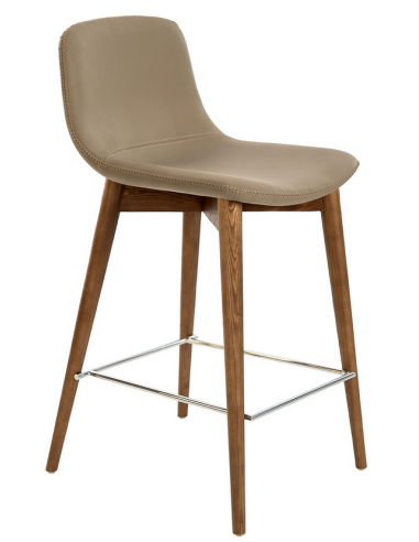 Barstol Med Ryglæn I Asktræ Stål Og Vegansk Læder H91 Cm Valnød Krom Mink Fra Angel Cerdá