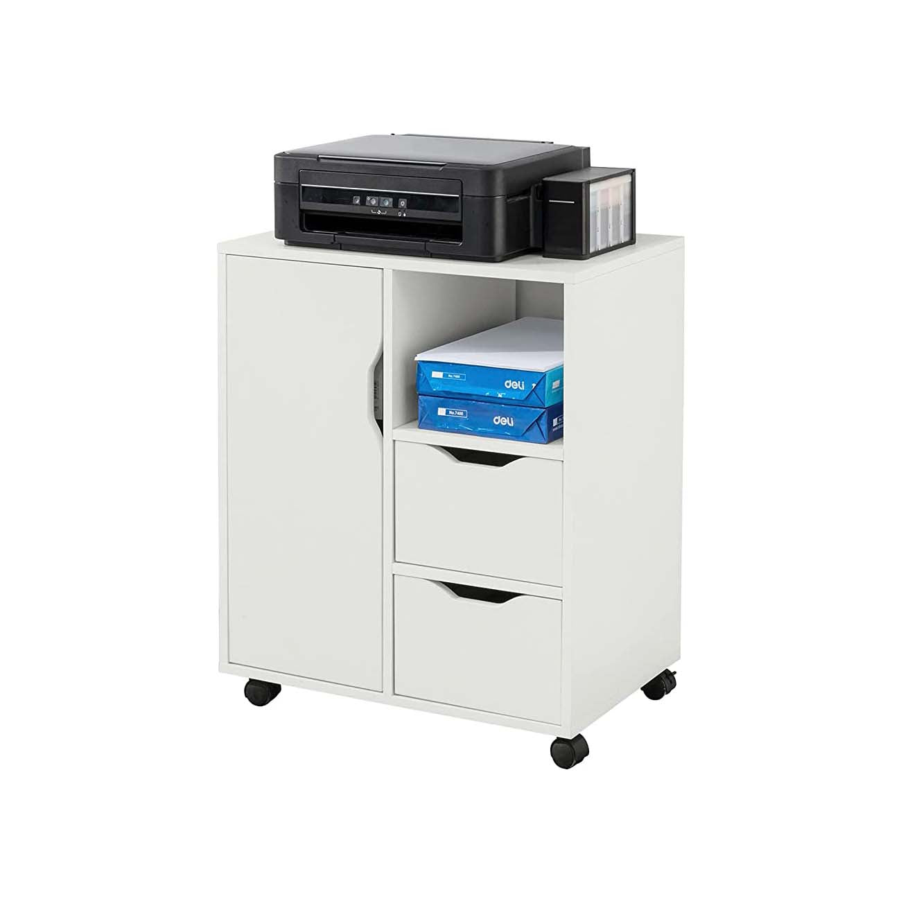 Printerstativ På Hjul Med Skuffer Og Skab 60 X 35 X 70 Cm Fra Sobuy – 4251388616536
