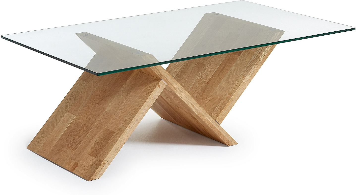 Sofabord Waley I Glas Og Massivt Egetræ 120 X 70 X 42 Cm Moderne Nordisk Fra Kave Home – 8433840377049