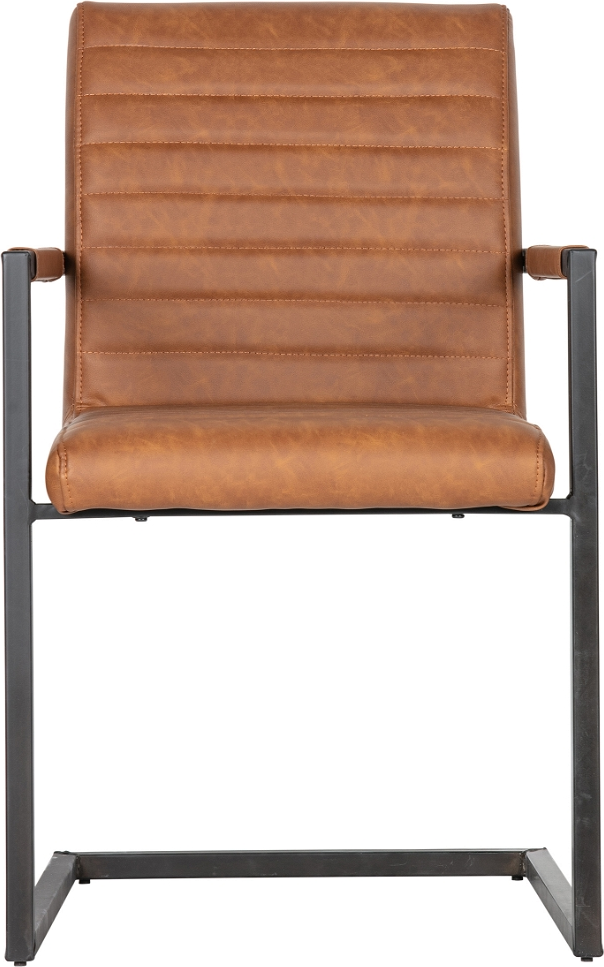 Spisebordsstol Med Armlæn Bas Lysebrun Ribbet Pu Læder Mat Sort Metalstel Fra Woood – 8714713088928