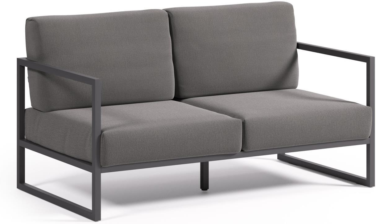 Udendørs 2 Personers Sofa Comova Sort Aluminium Med Aftagelige Hynder I Genanvendt Crevin Stof Fra Kave Home – 8433840782980