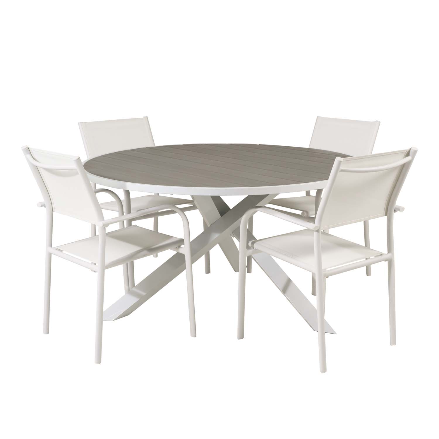Venture Design Havesæt M Parma Bord ø 140 Og 4 Santorini Stole M Armlæn Hvid Alu Textilene Fra Venture Design