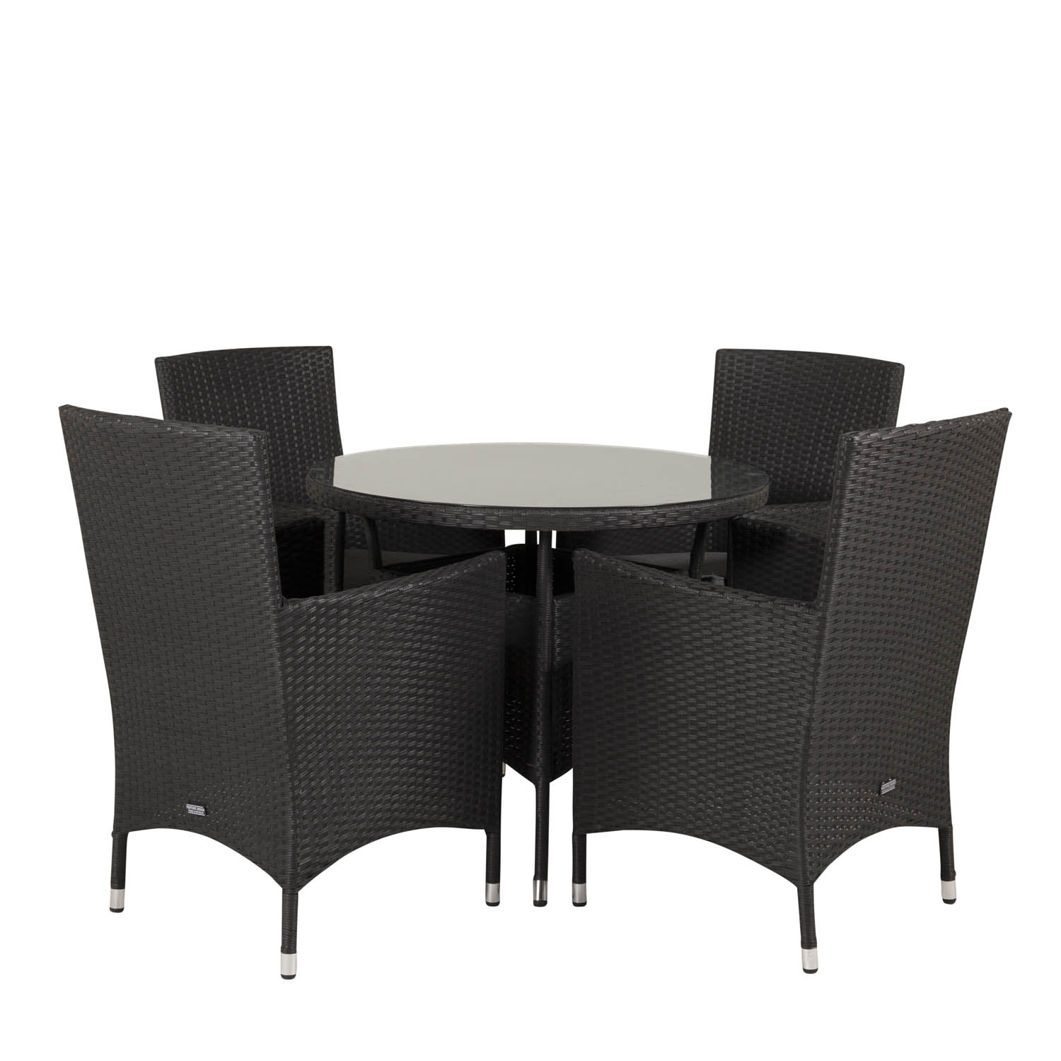 Venture Design Havesæt M Volta Bord ø 90 Og 4 Malin Stole M Armlæn Og Hynde Sort Rattan Glas Fra Venture Design
